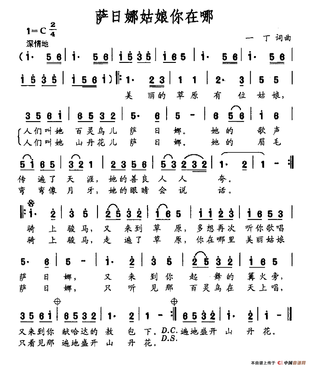 关于《萨日娜姑娘你在哪》曲谱的评论