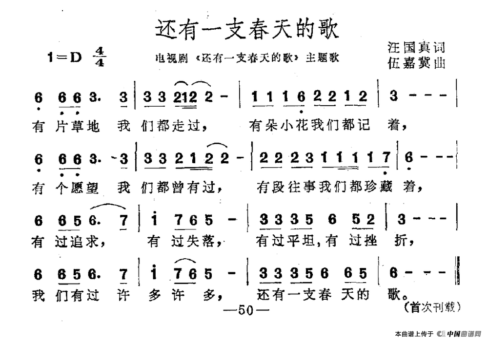 关于《还有一支春天的歌》曲谱的评论