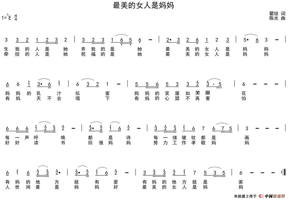 关于《最美的女人是妈妈》曲谱的评论
