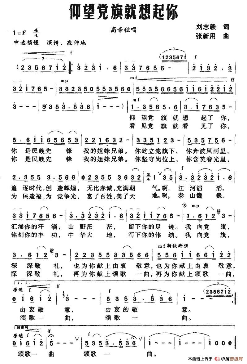 关于《仰望党旗就想起你》曲谱的评论