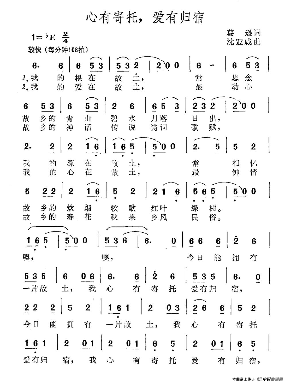 关于《心有寄托,爱有归宿》曲谱的评论