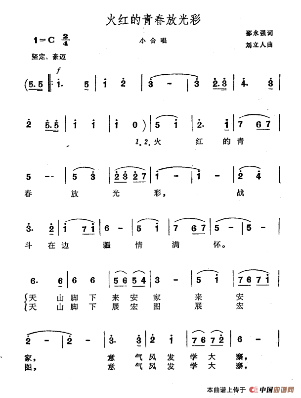 关于《火红的青春放光彩》曲谱的评论