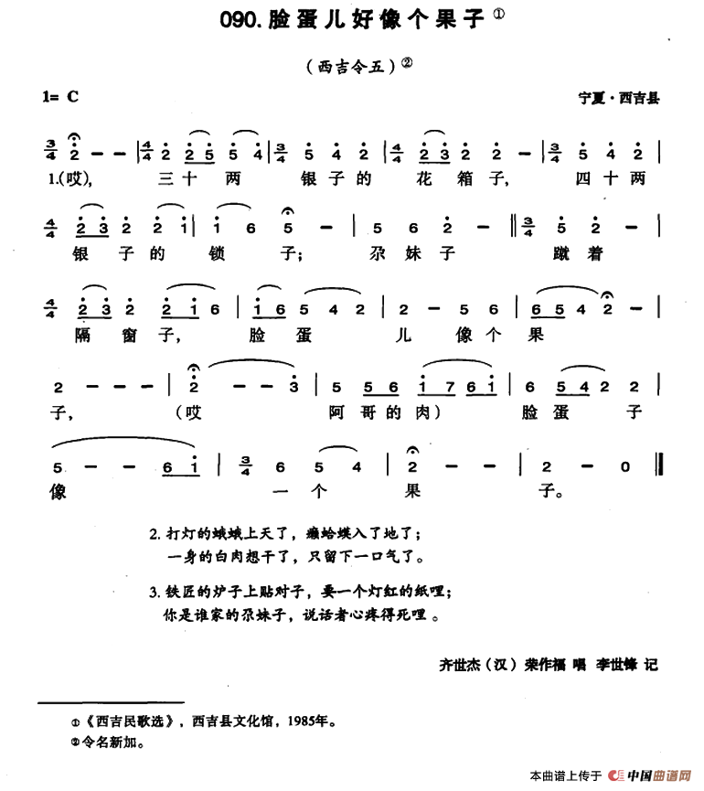关于《脸蛋儿好像个果子》曲谱的评论
