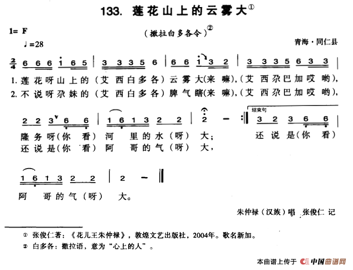 关于《莲花山上的云雾大》曲谱的评论