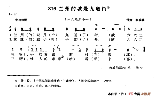 关于《兰州的城是九道街》曲谱的评论