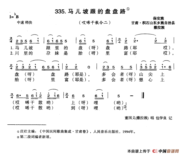 关于《马儿坡跟的盘盘路》曲谱的评论