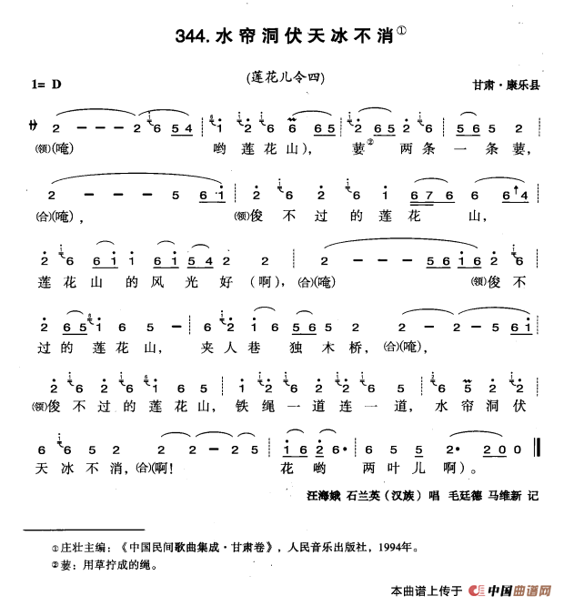 选自《中国花儿曲令全集》