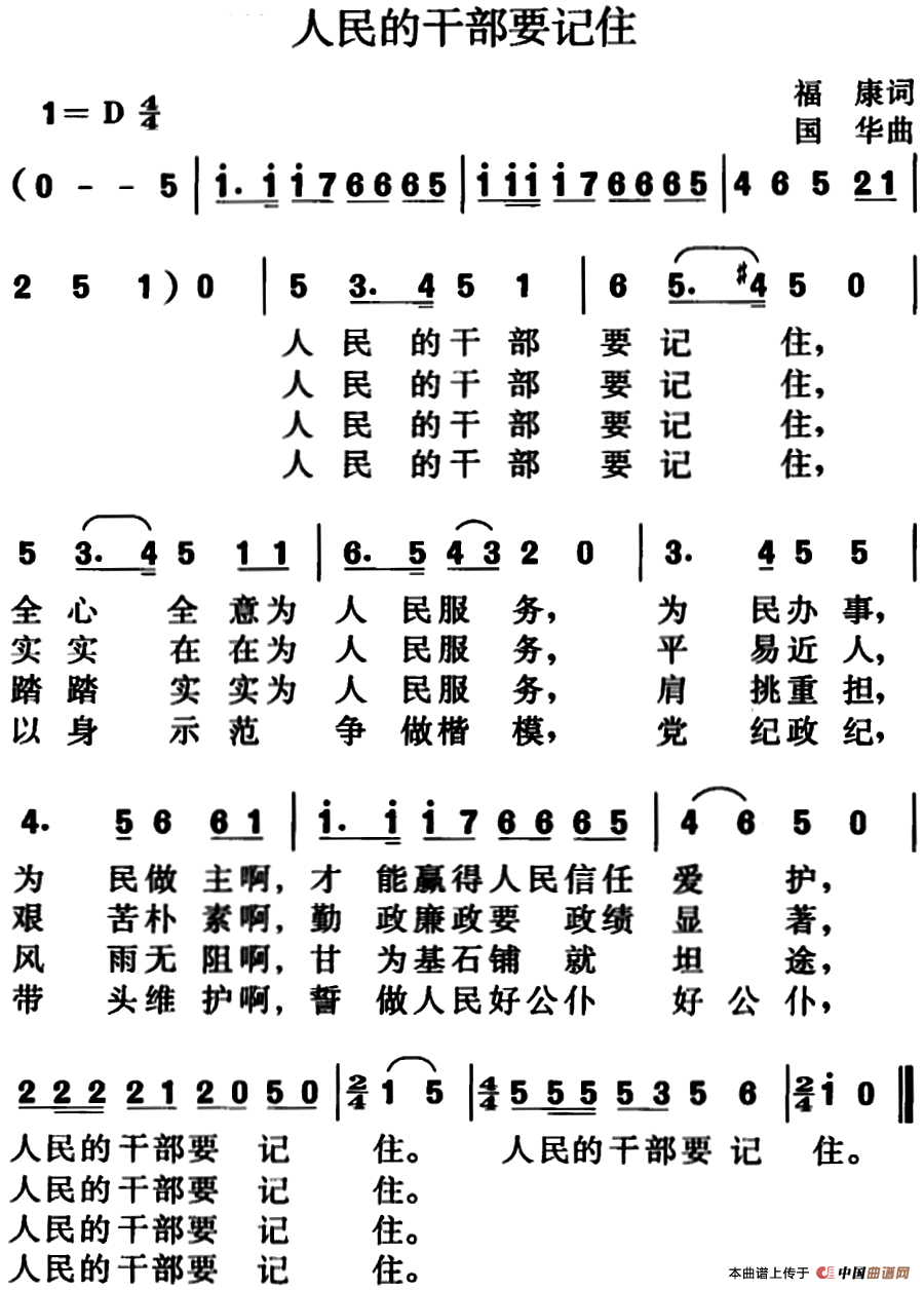 关于《人民的干部要记住》曲谱的评论