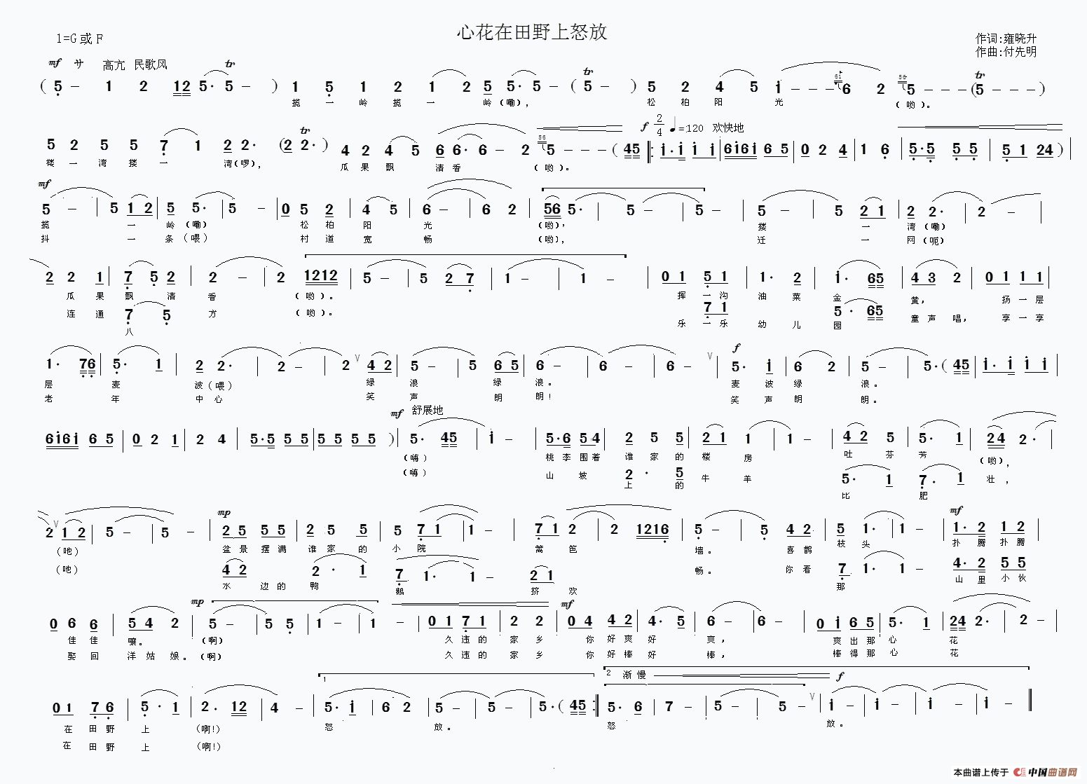 提示:在曲谱图片上单击右键,选择“图片另存为...”即可将曲谱保存到您的电脑中,打印时候可将图片插入到WORD中,调整合适大小打印即可。
