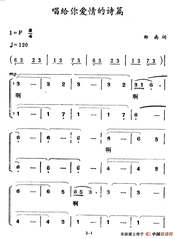 提示:在曲谱图片上单击右键,选择“图片另存为...”即可将曲谱保存到您的电脑中,打印时候可将图片插入到WORD中,调整合适大小打印即可。