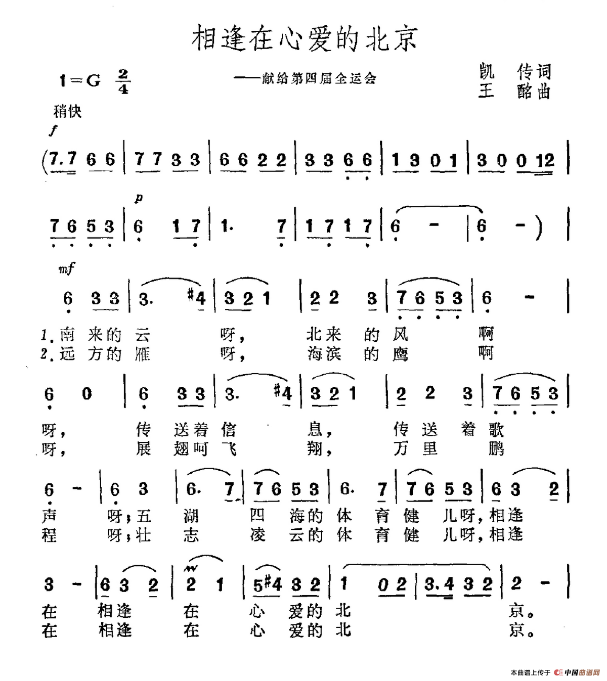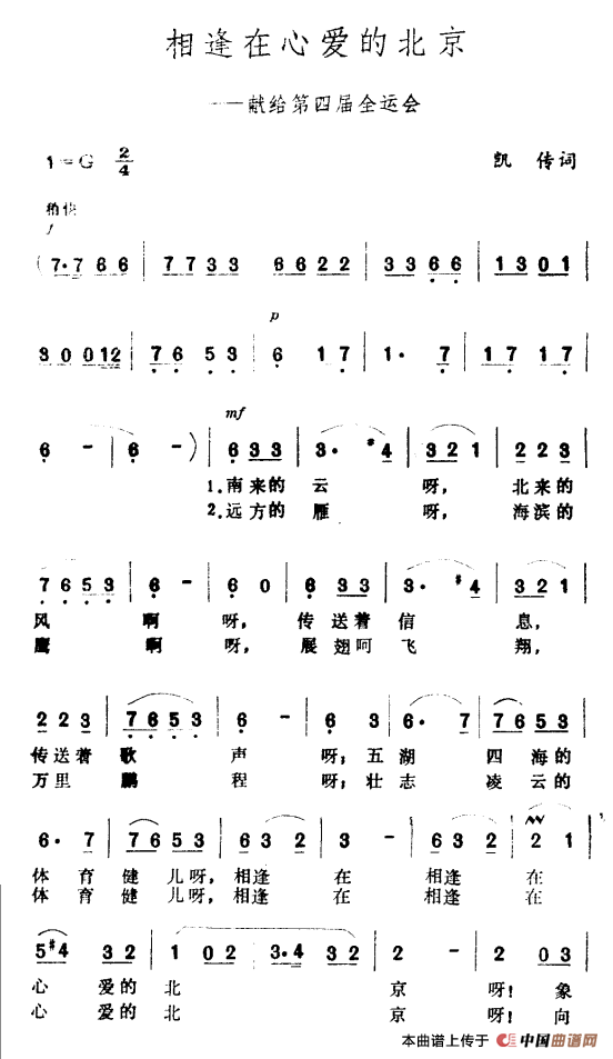 关于《相逢在心爱的北京》曲谱的评论