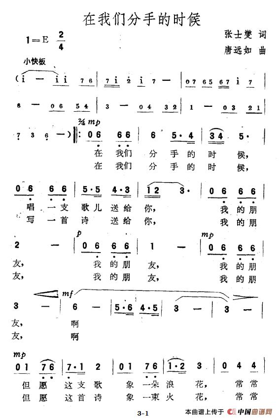 关于《在我们分手的时候》曲谱的评论