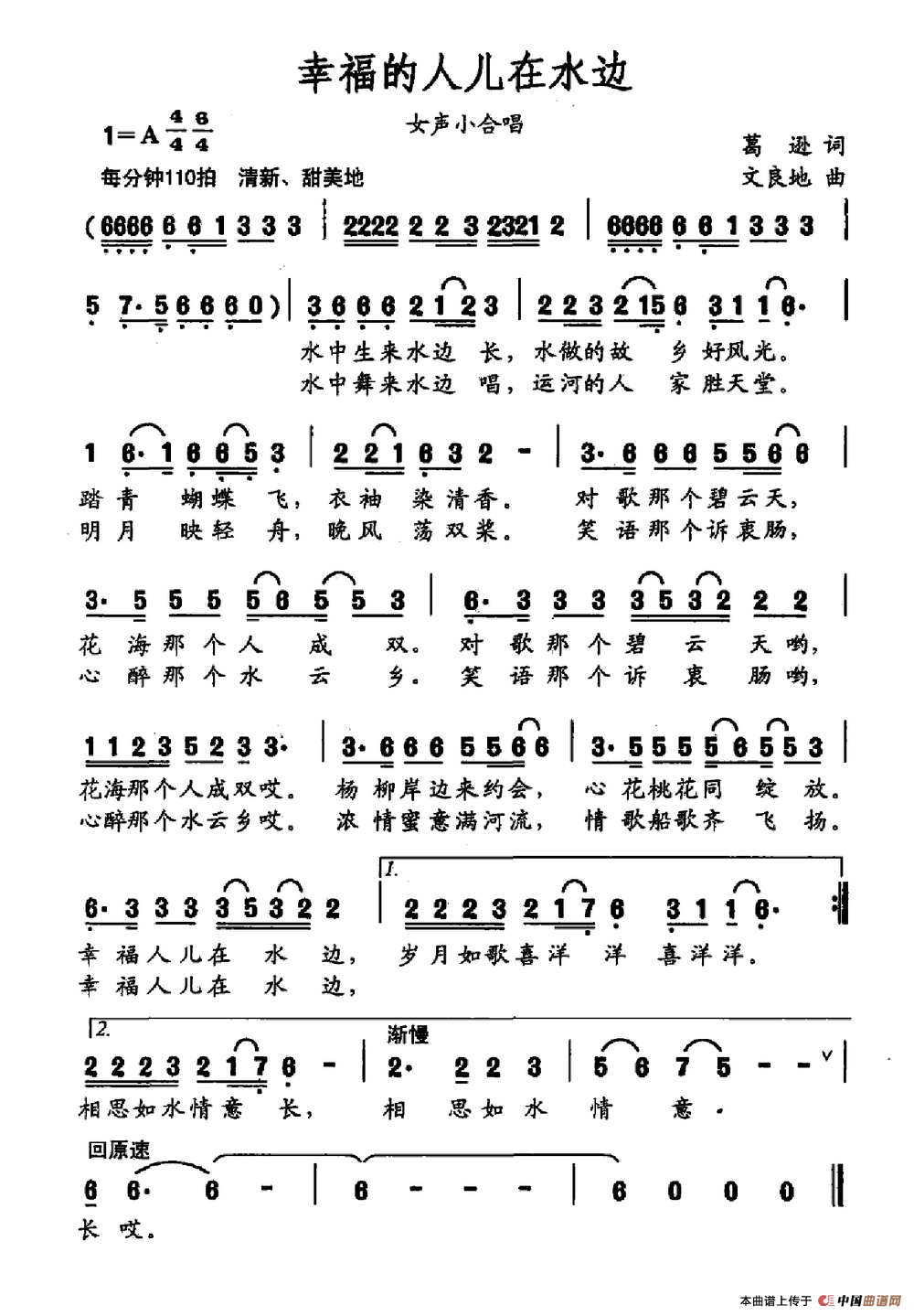 关于《幸福的人儿在水边》曲谱的评论