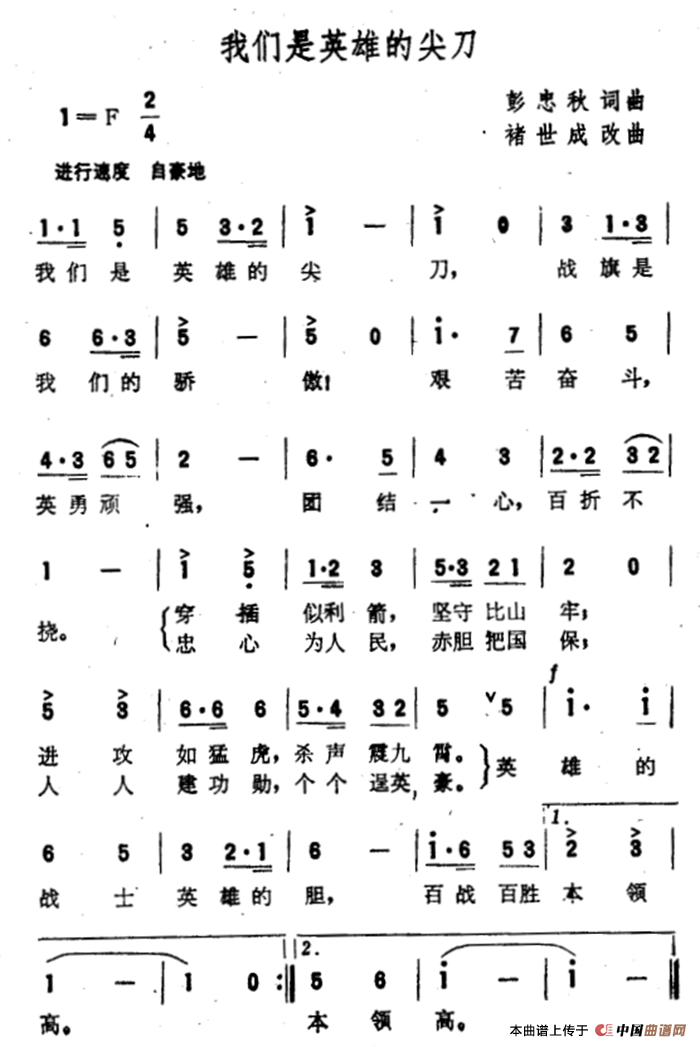 作词:彭忠秋 作曲:褚世成 来源:中国曲谱网 上传:北京娃娃