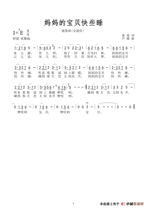 关于《妈妈的宝贝快些睡》曲谱的评论