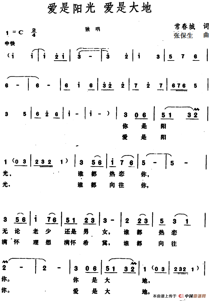 关于《爱是阳光,爱是大地 》曲谱的评论