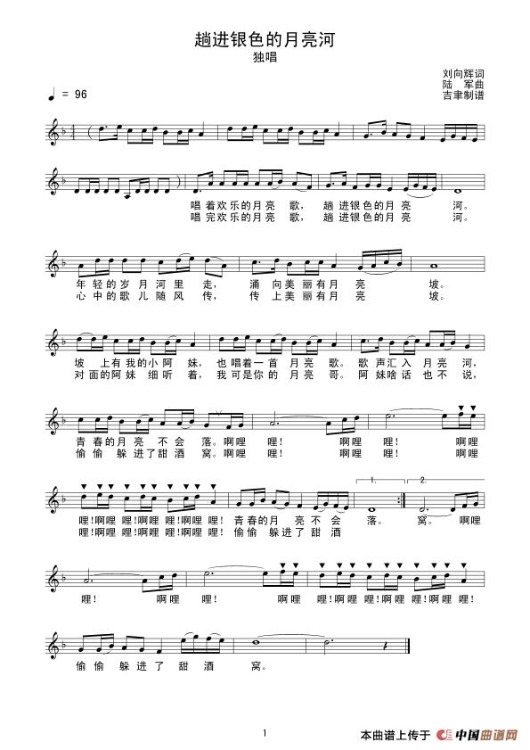 提示:在曲谱图片上单击右键,选择“图片另存为...”即可将曲谱保存到您的电脑中,打印时候可将图片插入到WORD中,调整合适大小打印即可。