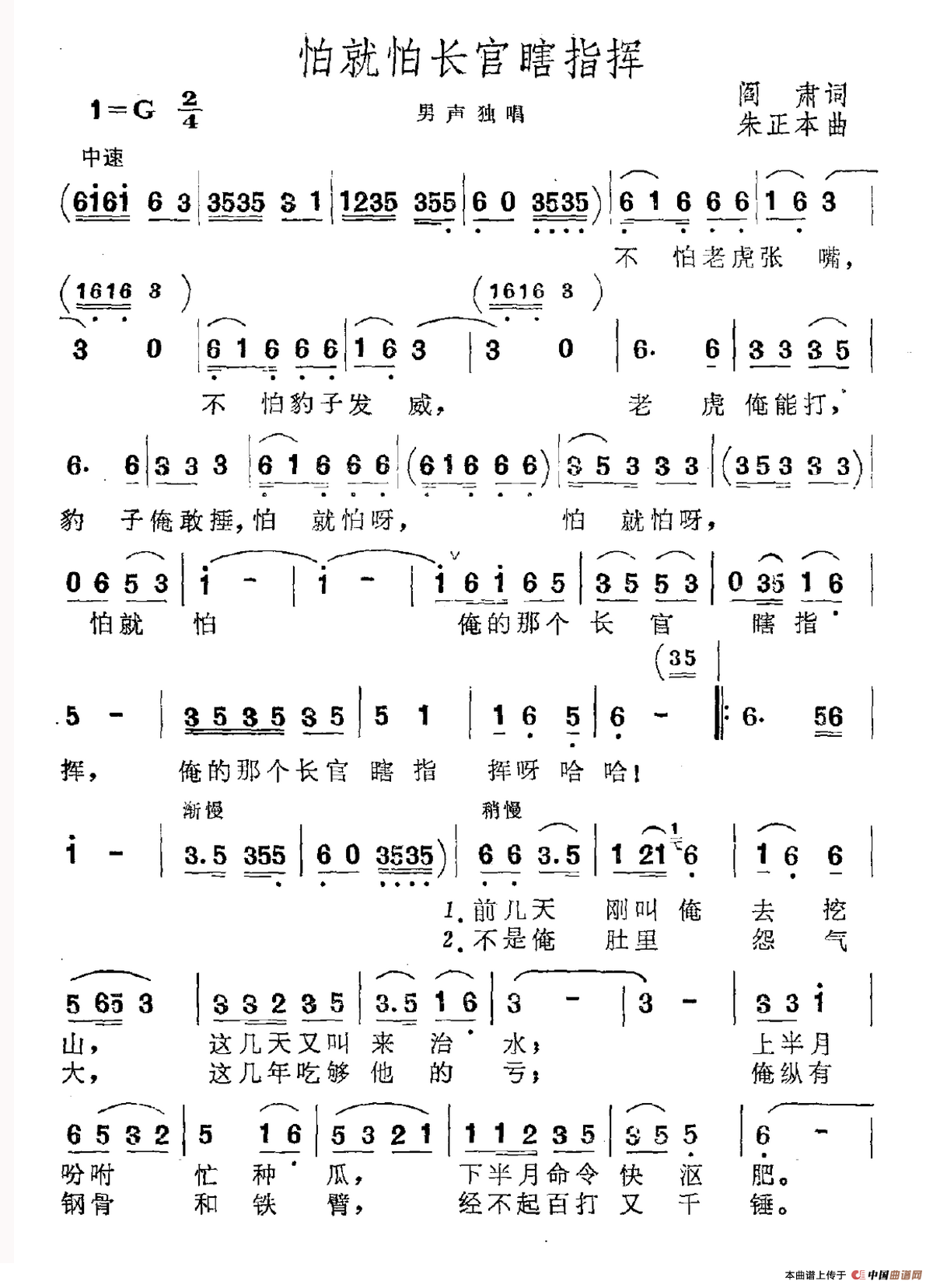 关于《怕就怕长官瞎指挥》曲谱的评论
