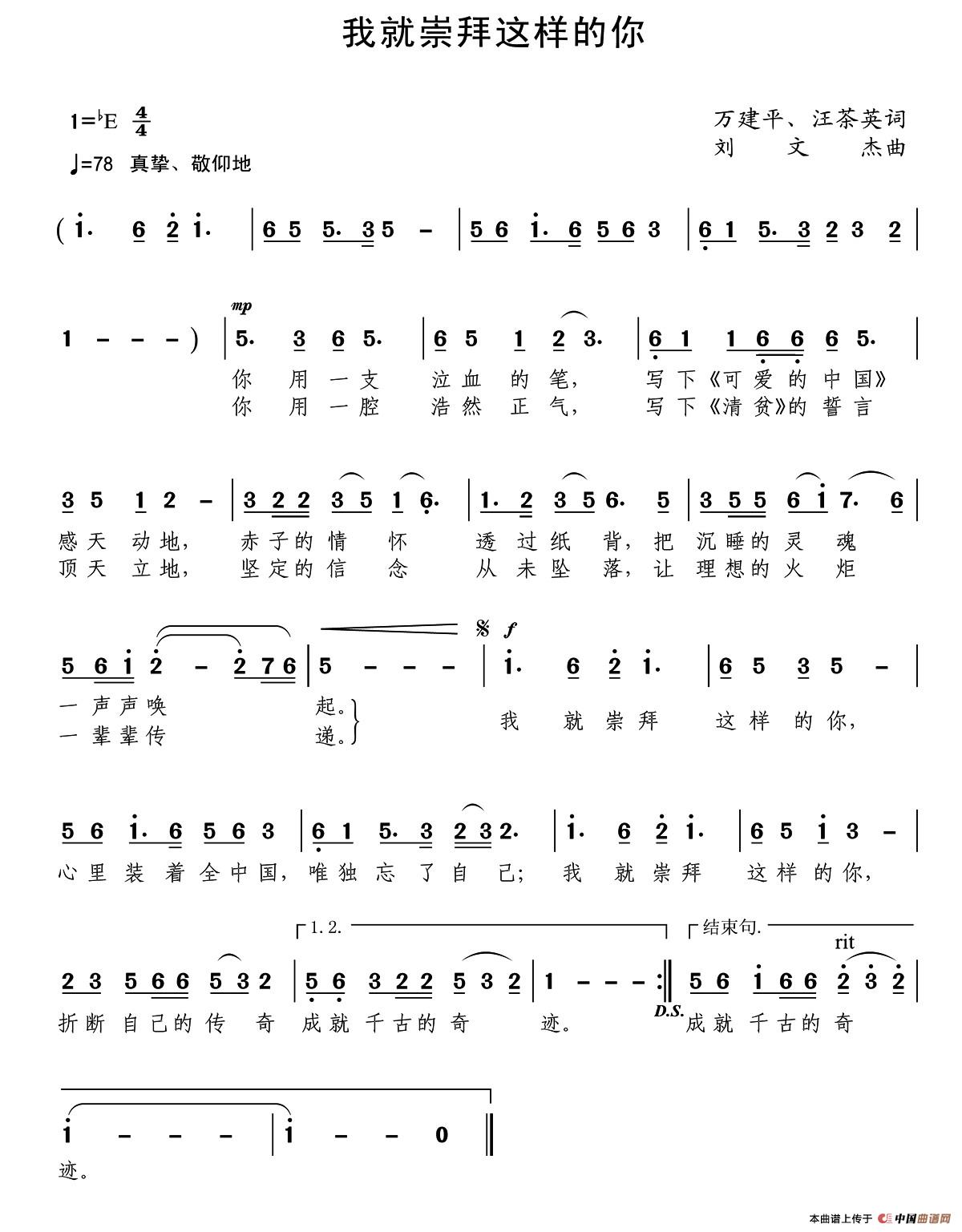 我就崇拜这样的你(万建平、汪茶英词刘文杰曲)