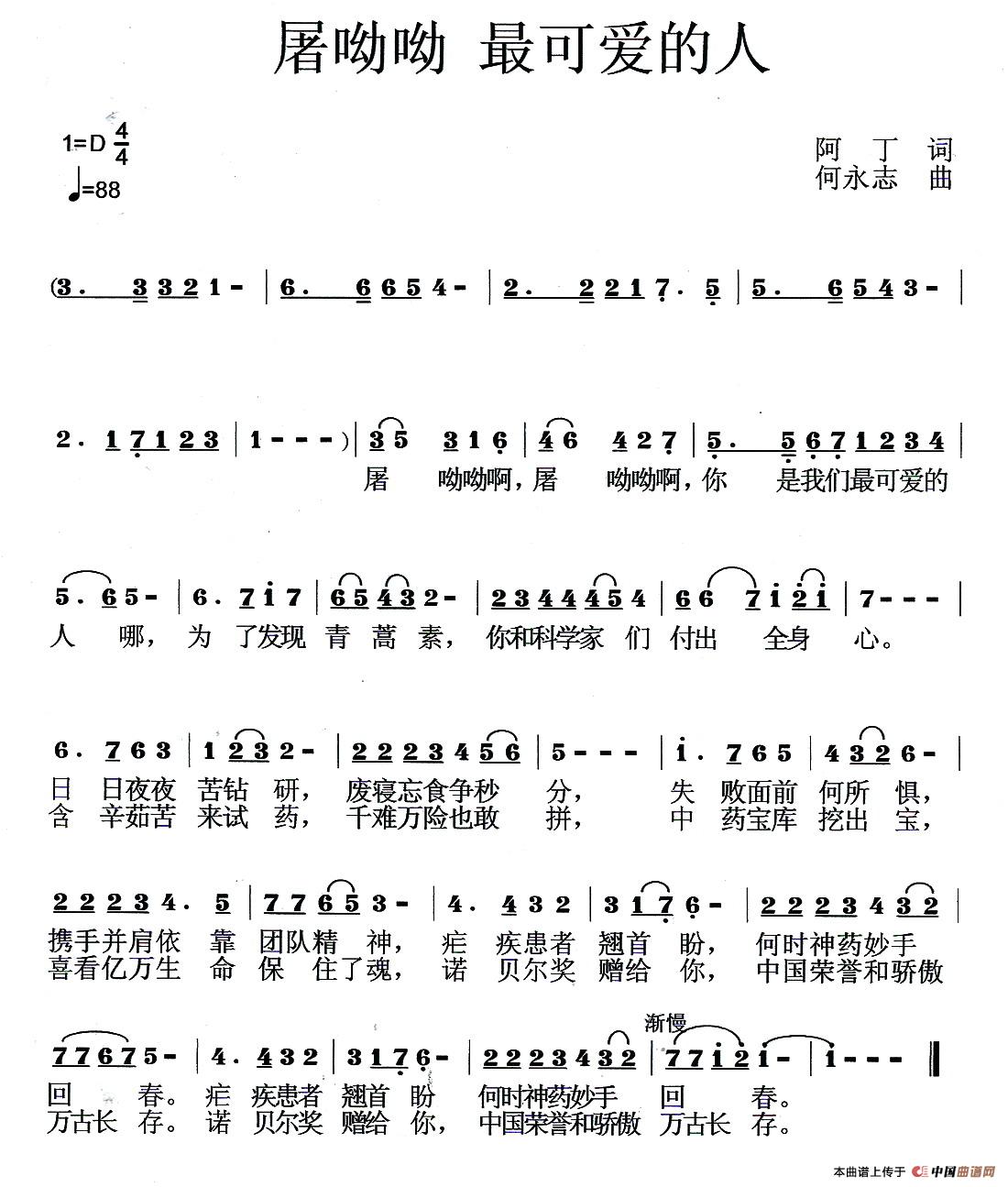关于《屠呦呦 最可爱的人》曲谱的评论