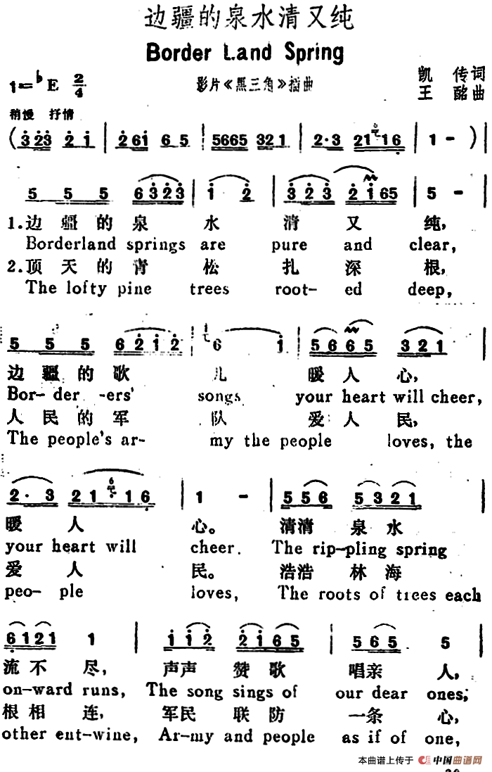 关于《边疆的泉水清又纯(Border Land Springs)》曲谱的评论