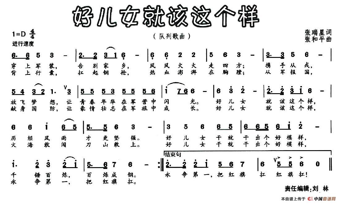 好儿女就该这个样( 张瑞星词 张和平曲)