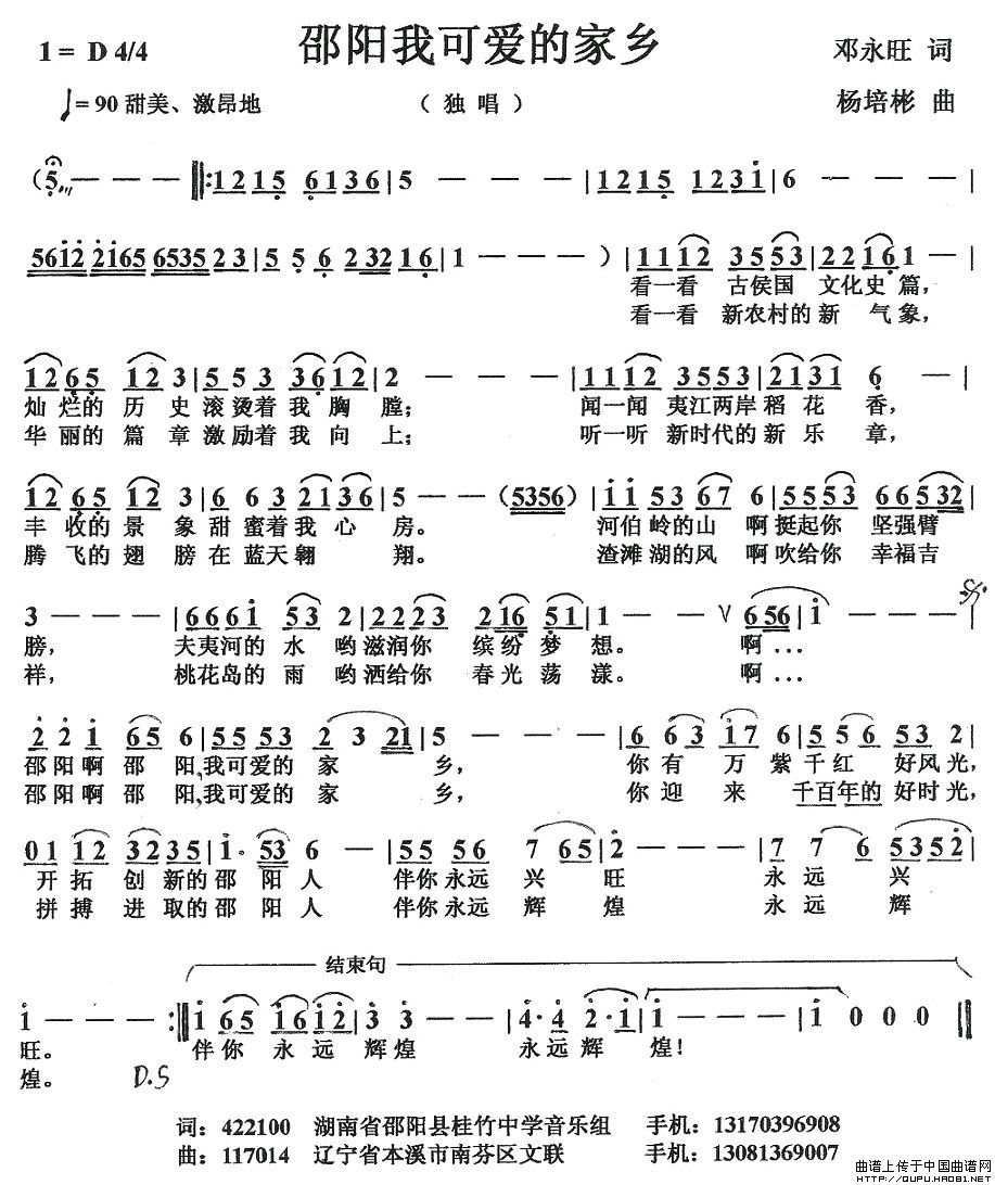 关于《邵阳我可爱的家乡》曲谱的评论