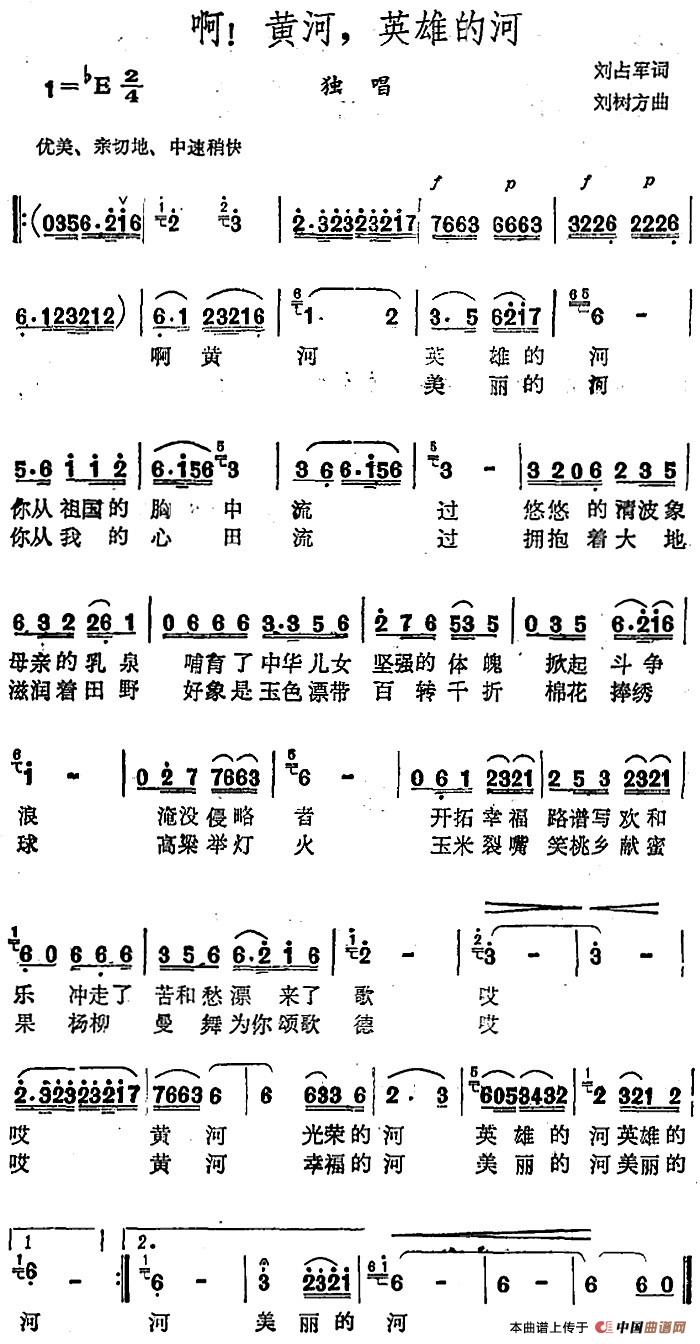 关于《啊!黄河,英雄的河 》曲谱的评论