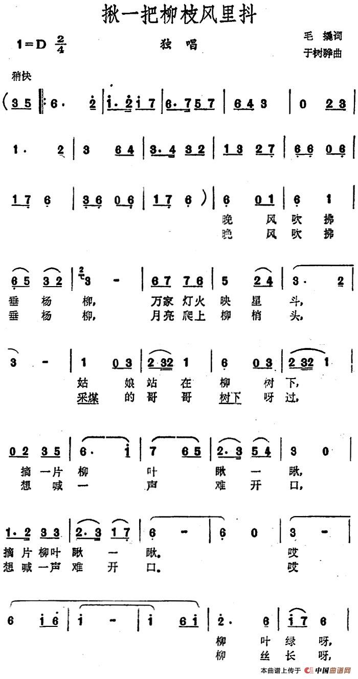 关于《揪一把柳枝风里抖》曲谱的评论