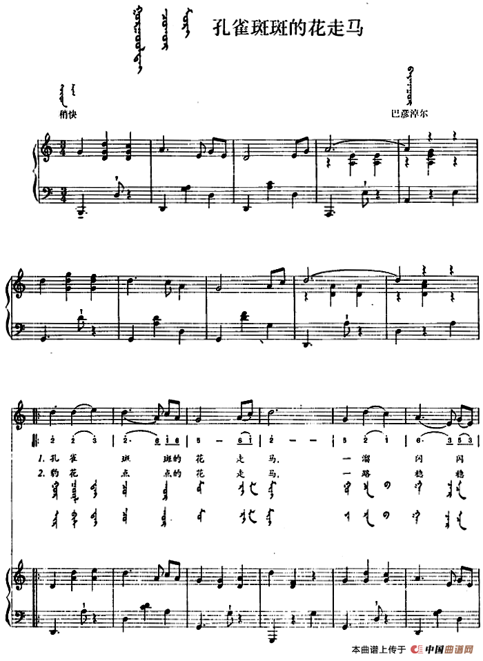 孔雀斑斑的花走马(蒙汉文对照、正谱)