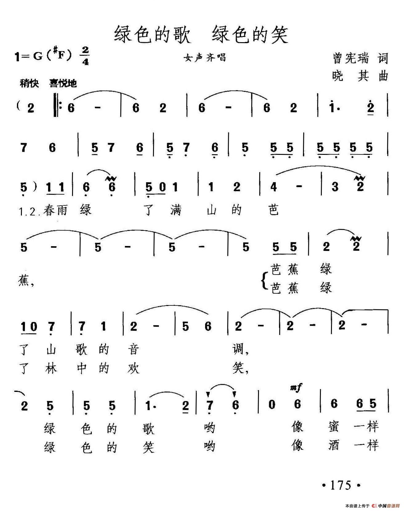 关于《绿色的歌,绿色的笑》曲谱的评论