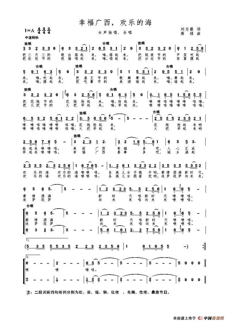 致谢:《中国曲谱网》衷心感谢作者老师馈赠原版歌谱!