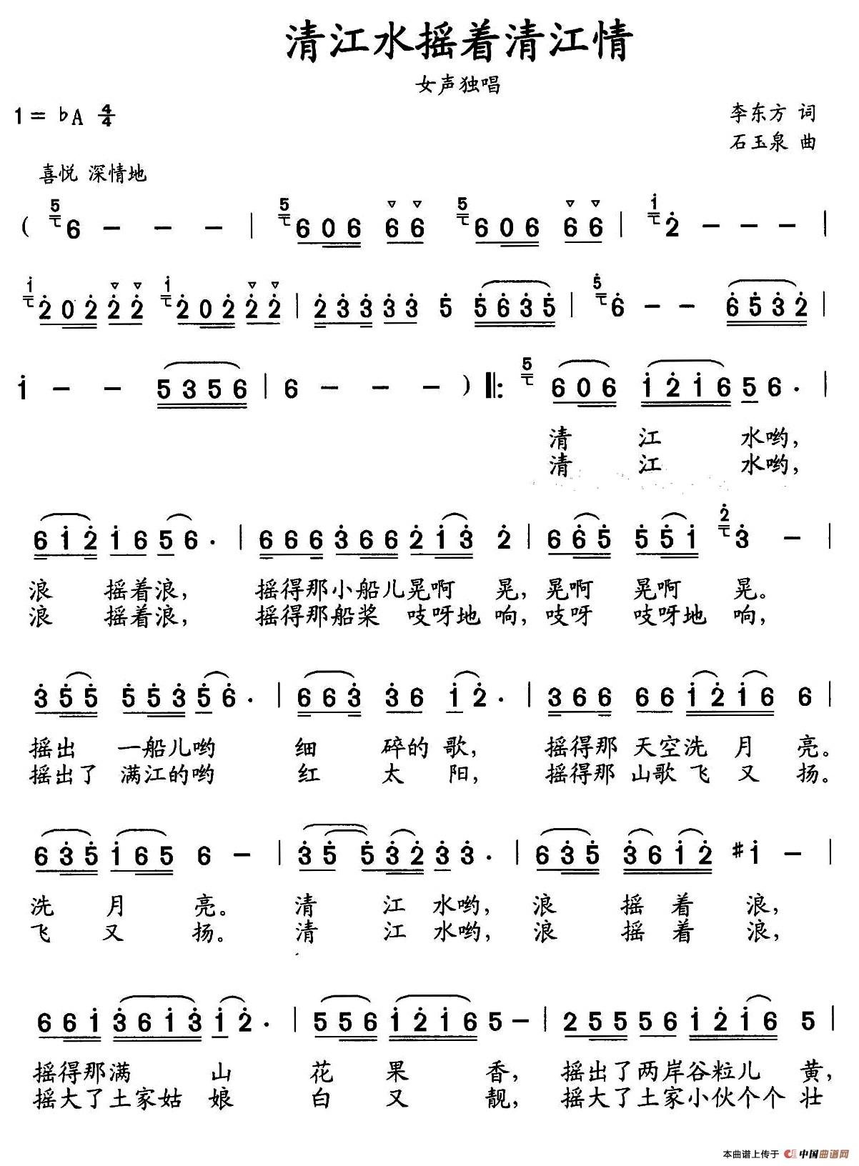 关于《清江水摇着清江情》曲谱的评论