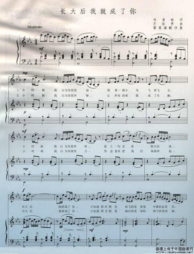 长大后我就成了你(正谱、黎英海配伴奏版)
