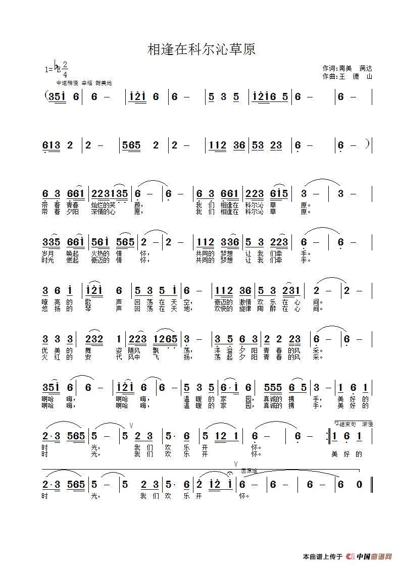 关于《相逢在科尔沁草原》曲谱的评论
