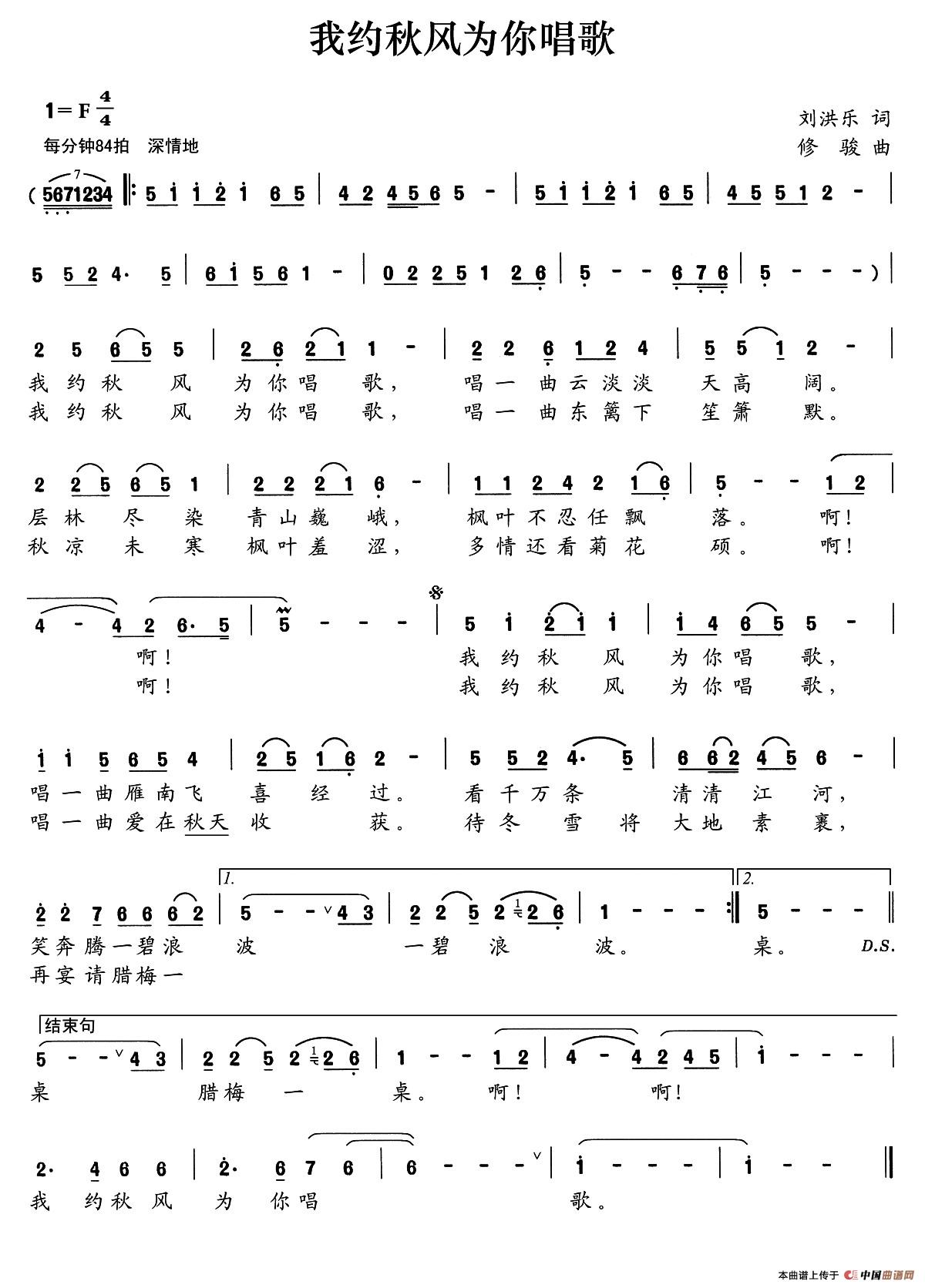 关于《我约秋风为你唱歌》曲谱的评论