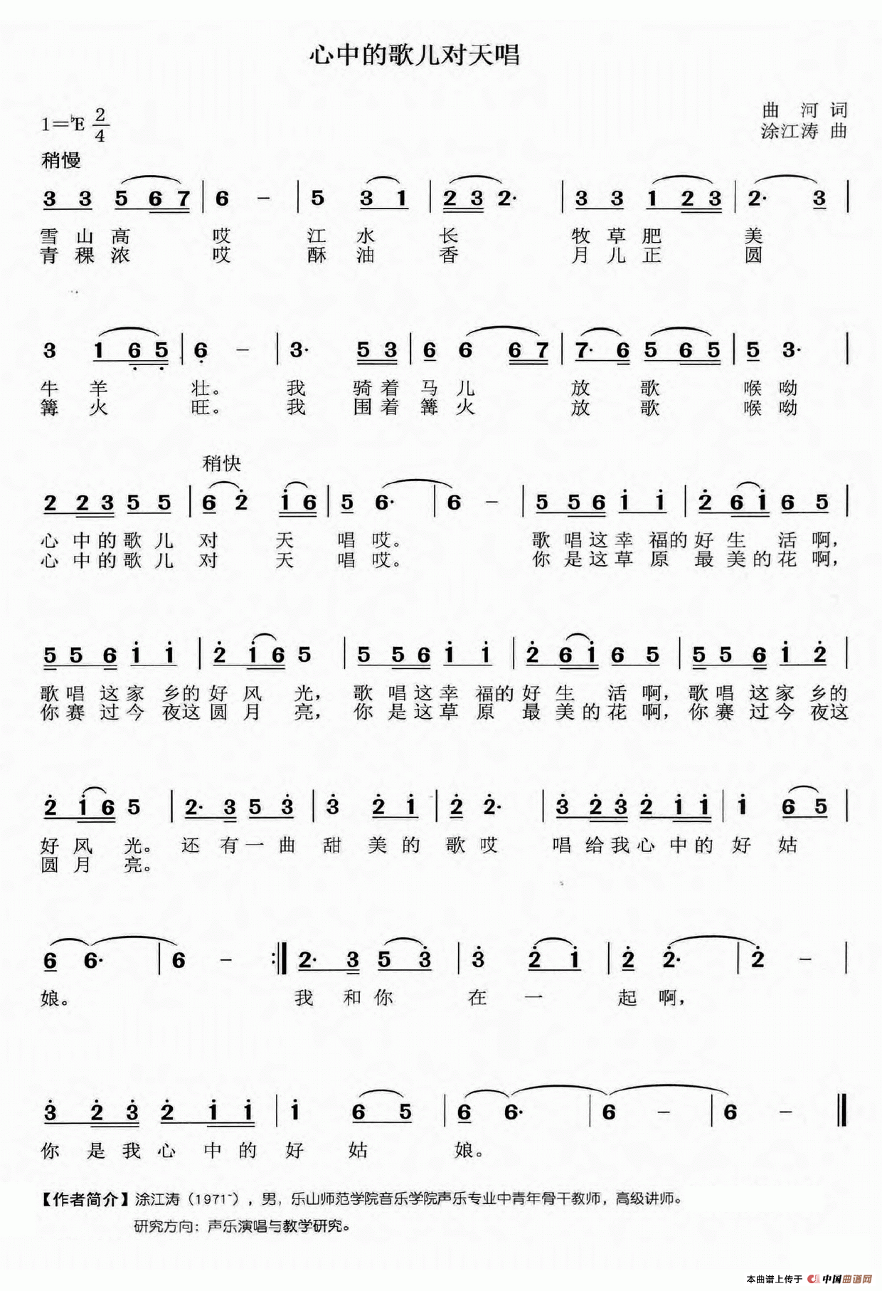 关于《心中的歌儿对天唱》曲谱的评论