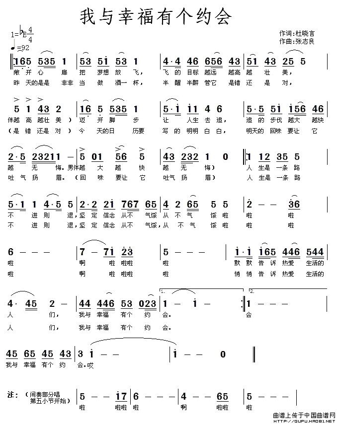 关于《我与幸福有个约会》曲谱的评论