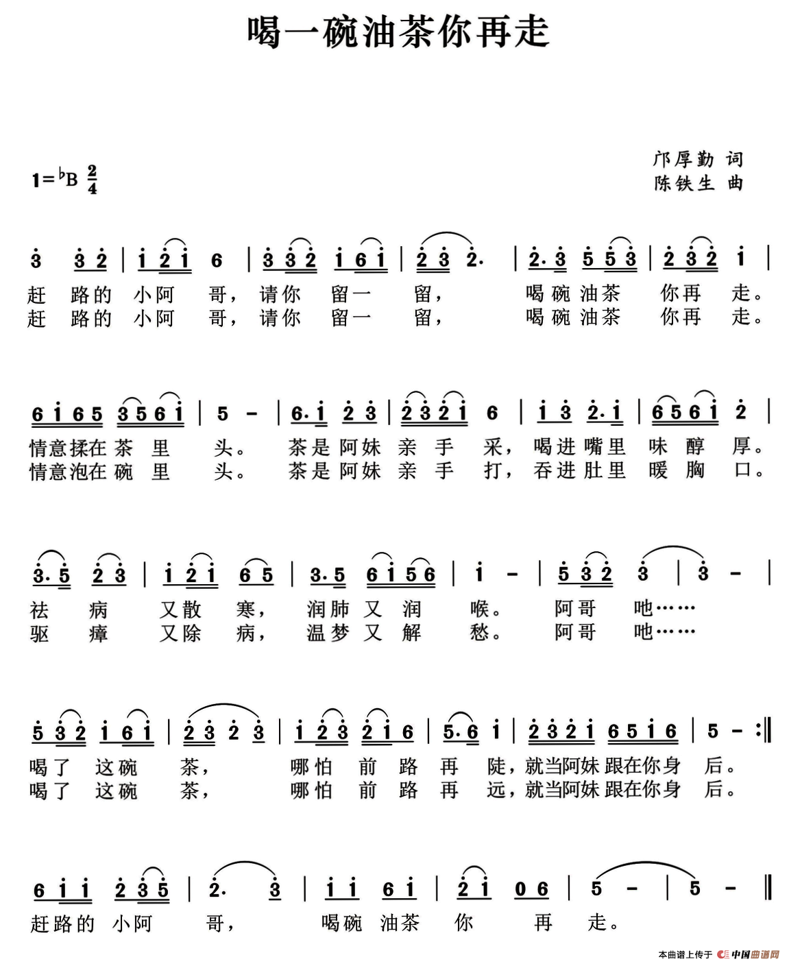 关于《喝一碗油茶你再走》曲谱的评论