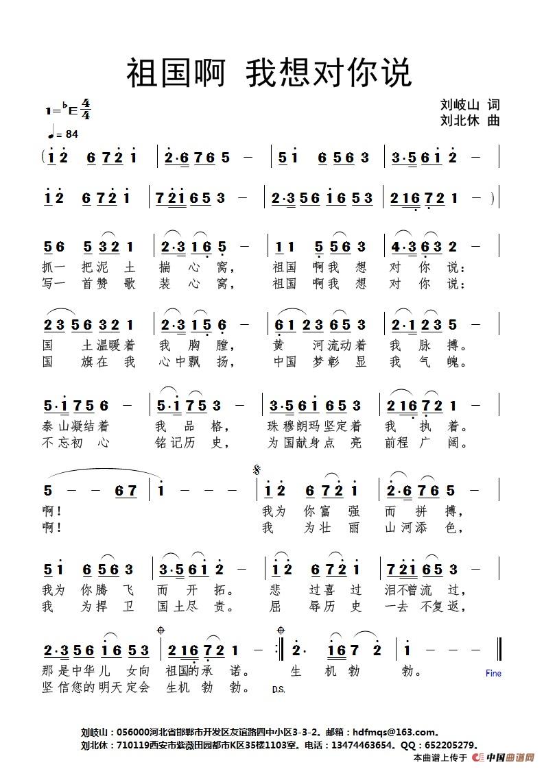 关于《祖国啊 我想对你说》曲谱的评论