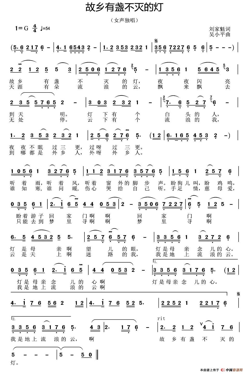 致谢:《中国曲谱网》衷心感谢作者老师馈赠原版歌谱!