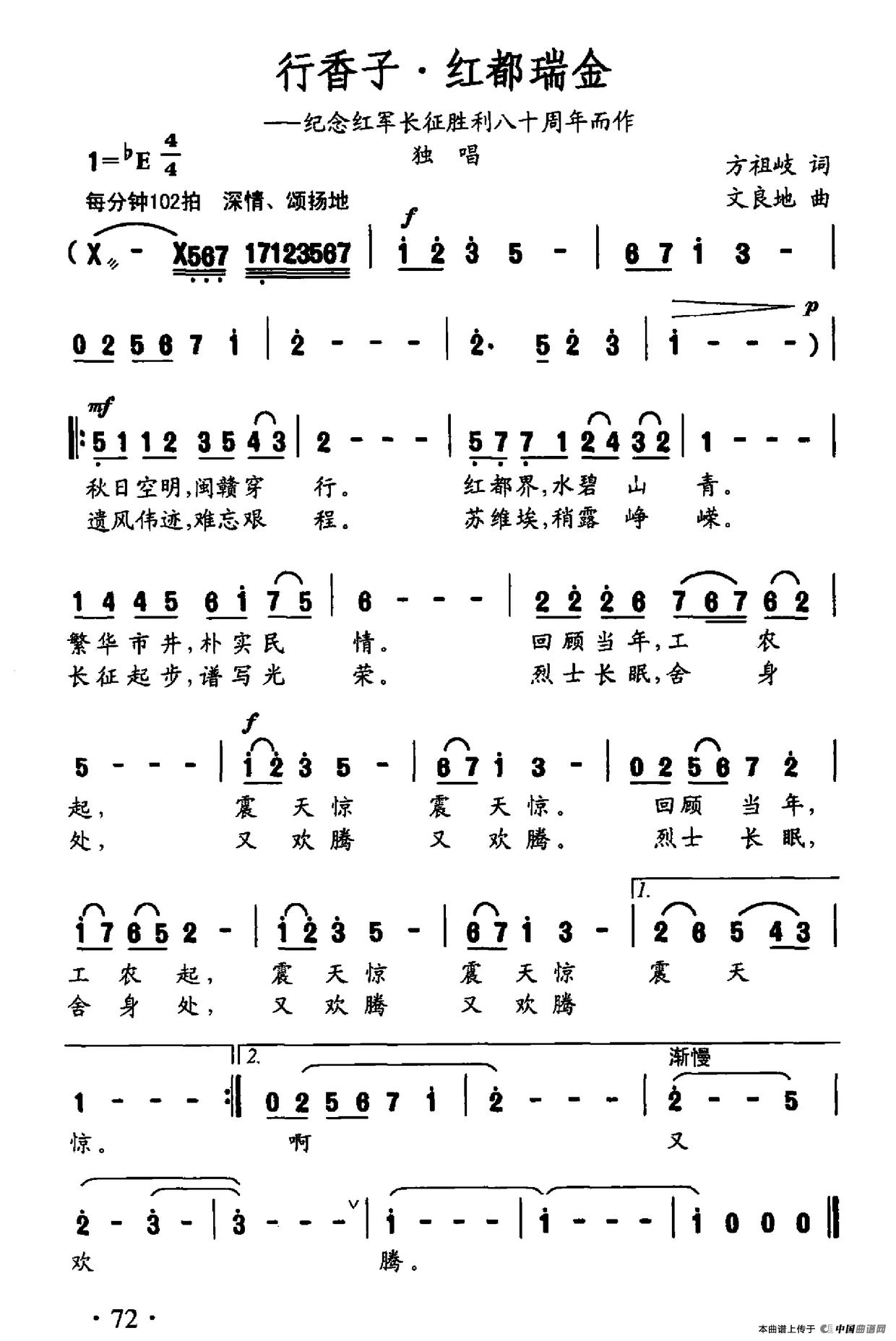 关于《行香子·红都瑞金》曲谱的评论