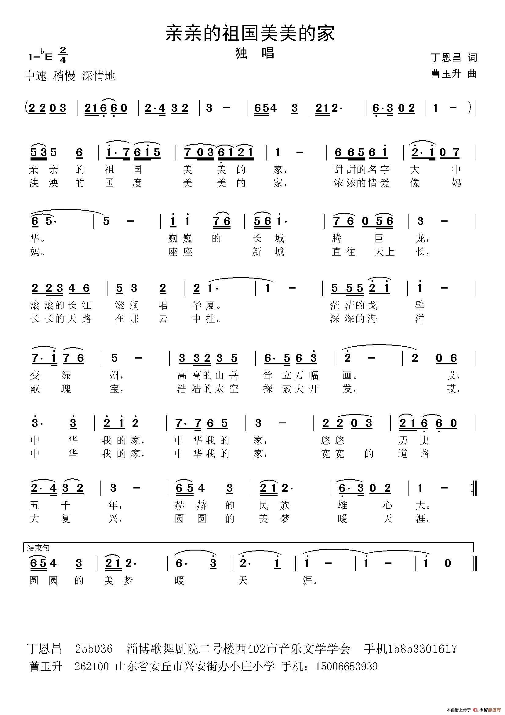 亲亲祖国美美的家(丁恩昌词 曹玉升曲)