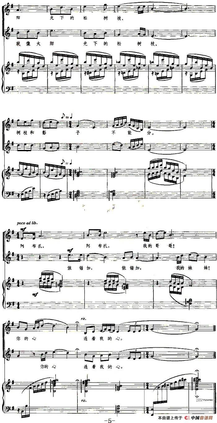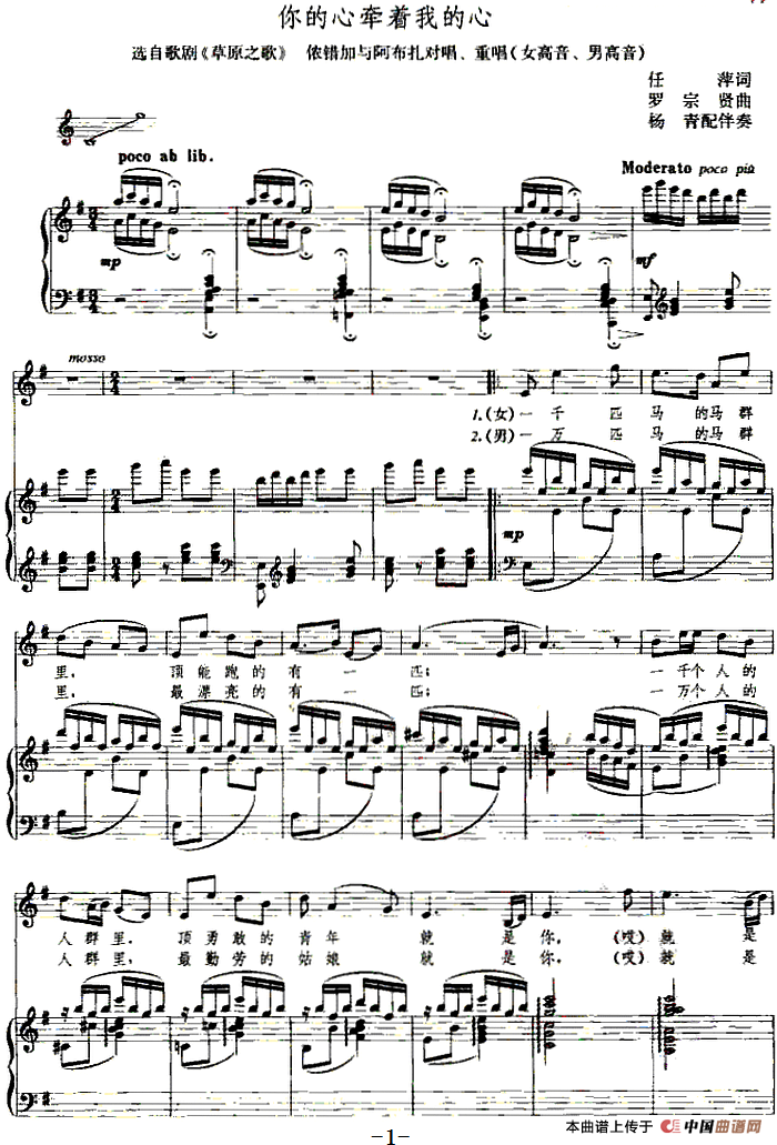 你的心牵着我的心(歌剧《草原之歌》选曲、正谱)