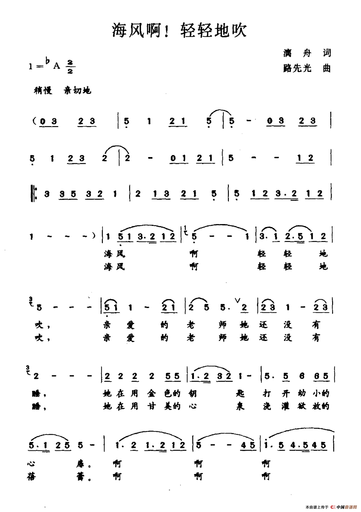 关于《海风啊!轻轻地吹》曲谱的评论