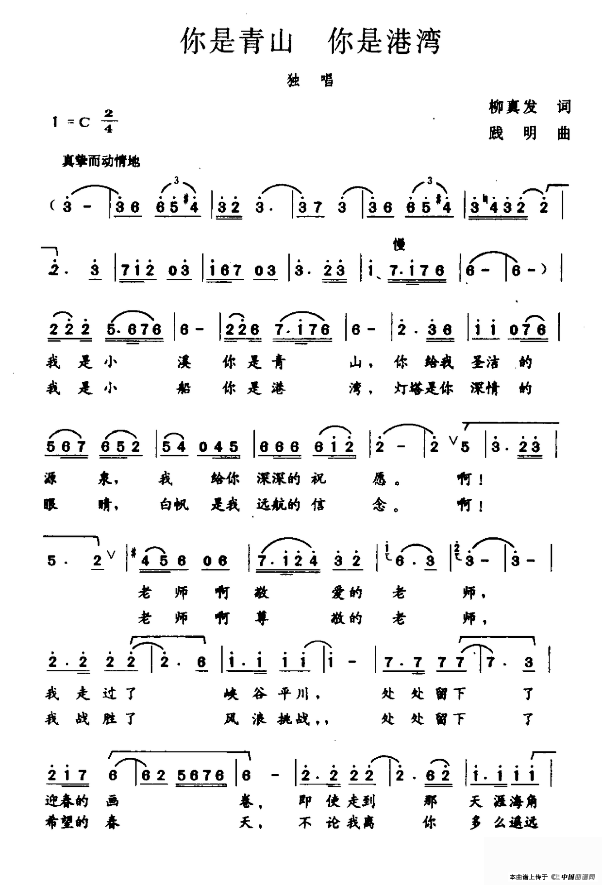 关于《你是青山 你是港湾》曲谱的评论