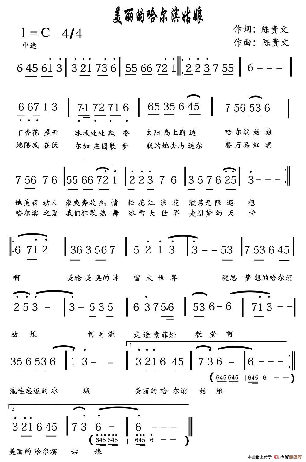 关于《美丽的哈尔滨姑娘》曲谱的评论