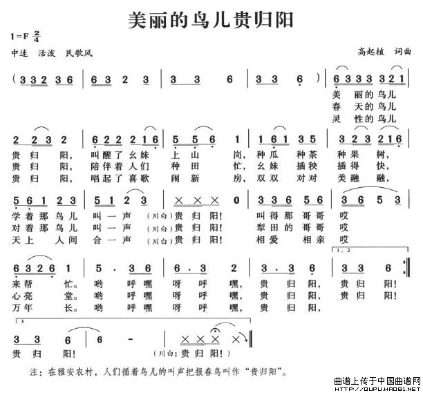 关于《美丽的鸟儿归贵阳》曲谱的评论
