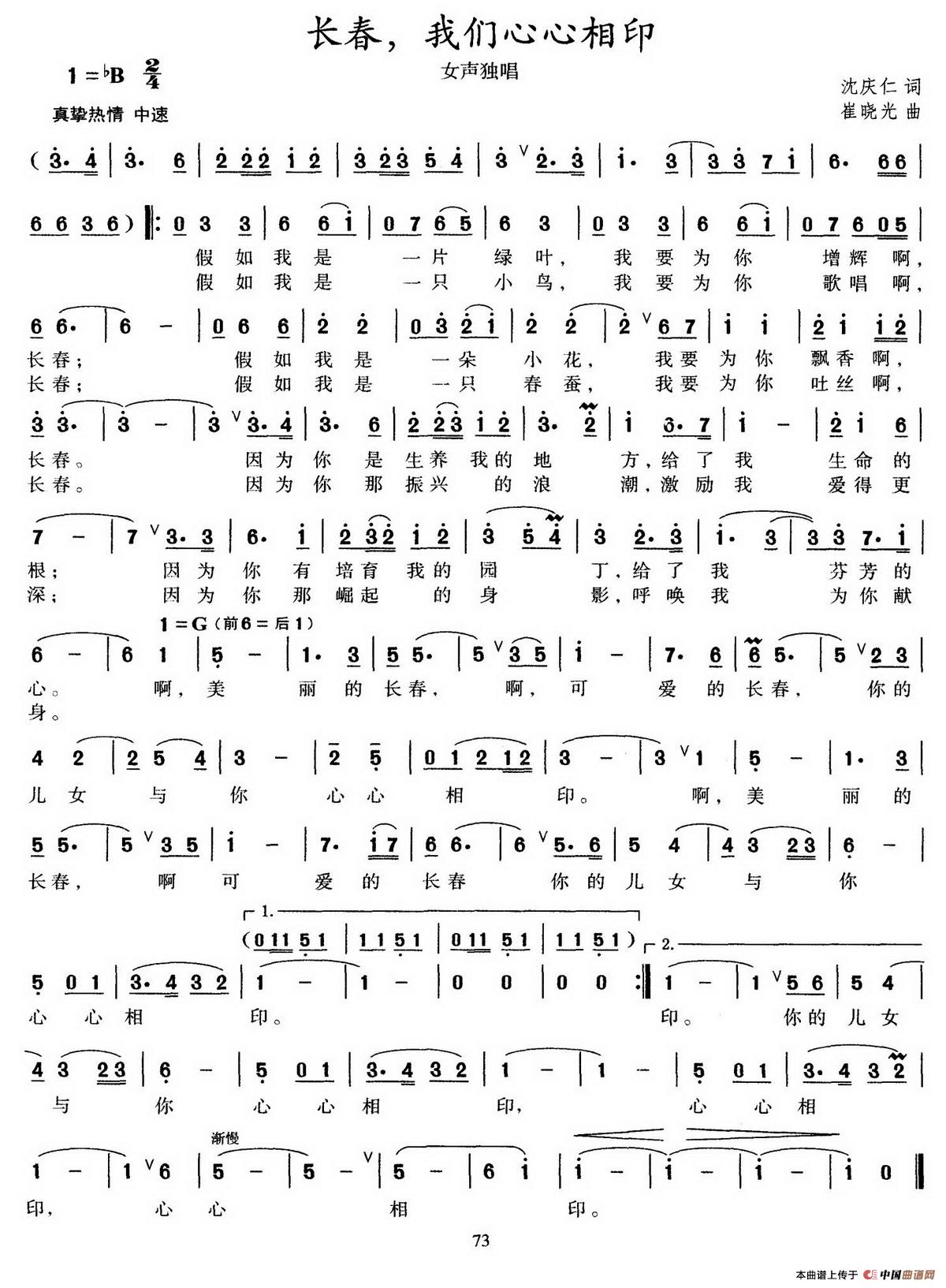 关于《长春,我们心心相印》曲谱的评论