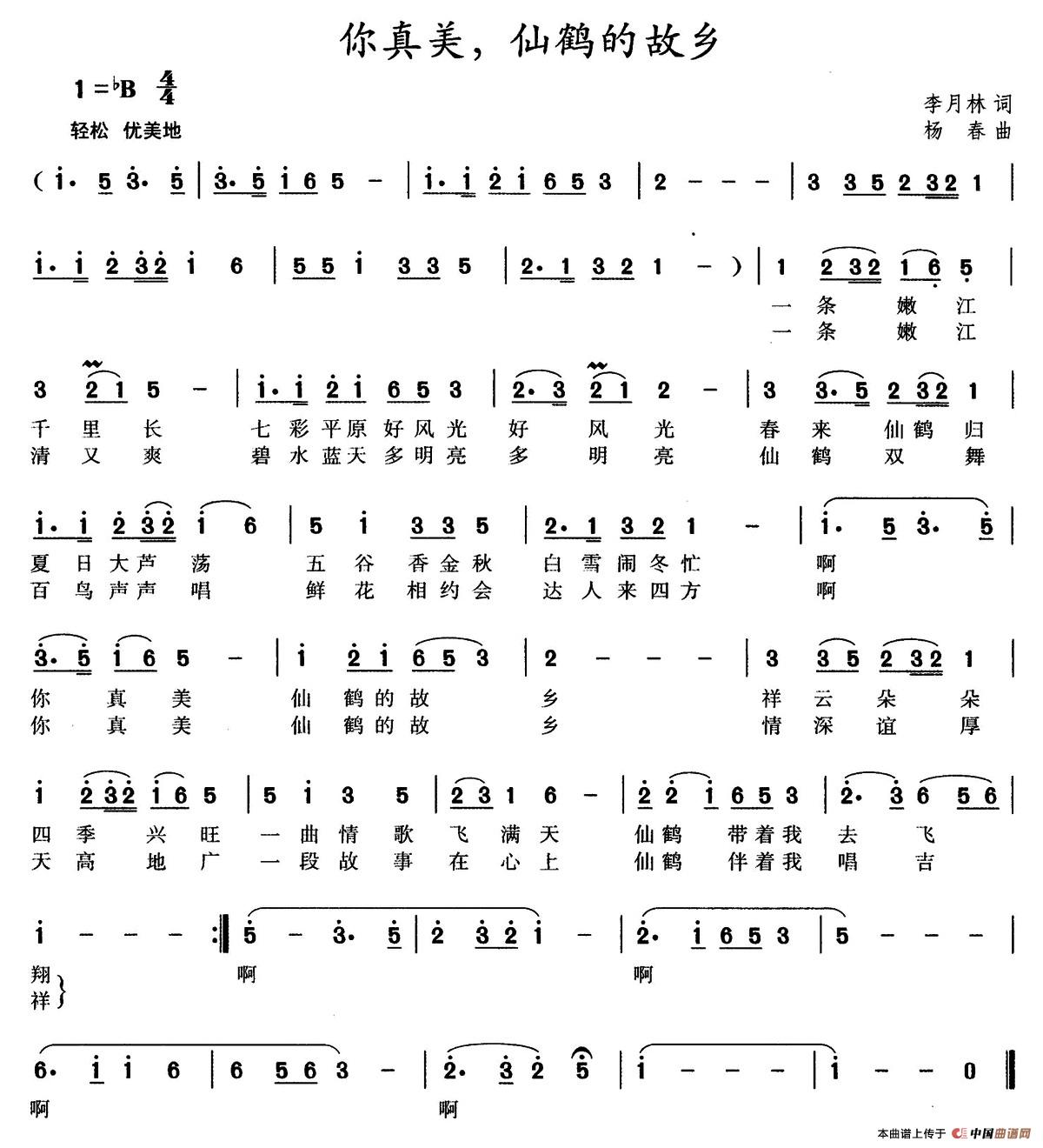 关于《你真美,仙鹤的故乡》曲谱的评论